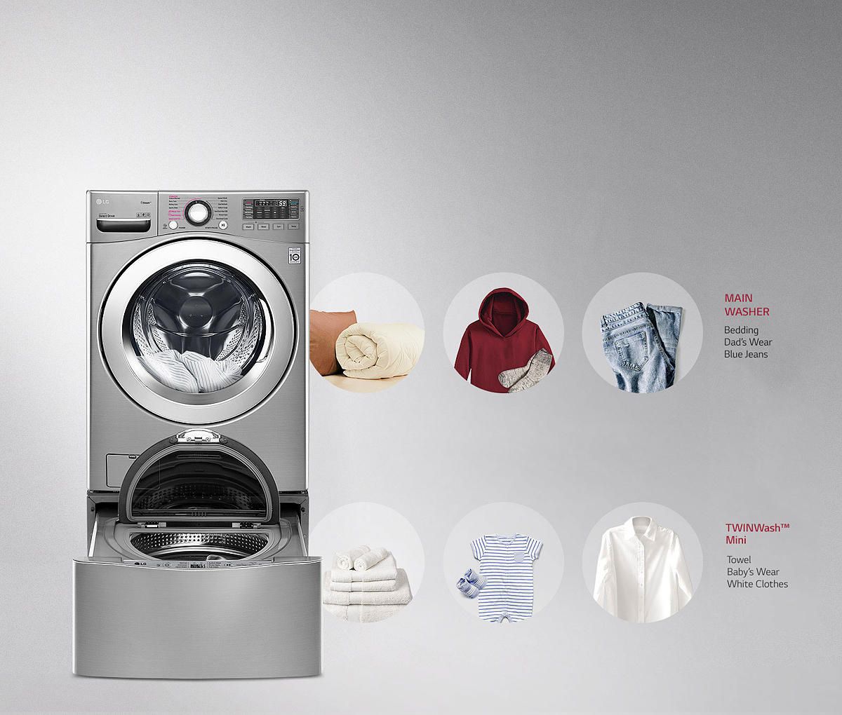 18 კგ/10კგ + Twin wash 3,5 კგ |